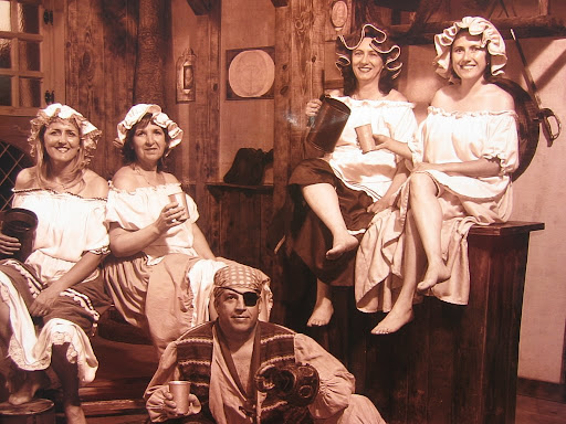 La posibilidad de aparecer disfrazado de pirata, con un parche en el ojo, un garfio en la mano y encadenado al suelo, junto a tan estupendas cantineras, nunca se me había pasado por la cabeza, pero en fín, lo dicho: ¡¡¡Todo es posible en Isla Mágica!!!