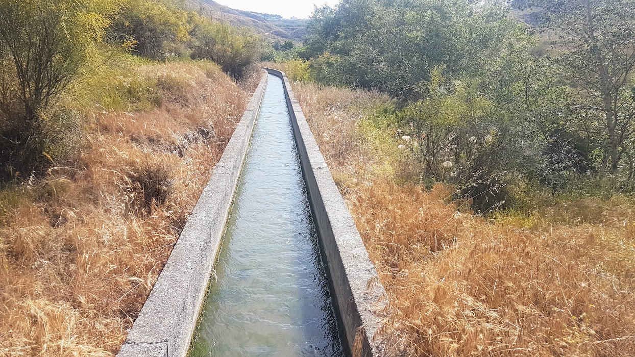 Desde la iglesia, giramos de nuevo a la derecha para localizar el carril que baja hasta la Presa de Derivación, punto de inicio del canal. Luego nos acercaremos al módulo Partidor y al tubo de hierro por el que cruza el rio Cacín y a partir de ese momento seguir el camino de servicio del canal que no abandonaremos, más o menos, hasta llegar a la vega de Calardos en Huétor Tájar, paraje en donde se encuentra el fin del canal y por lo tanto de nuestra ruta.