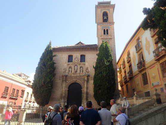 Caminando por la gran Plaza Nueva, nos detenemos frente a la imponente fachada de la Real Chancillería, sede del Tribunal Superior de Justicia de Andalucía, nos asomamos a observar como el río Darro se pierde misteriosamente bajo las sombras del Embovedado, custodiado por la graciosa placeta que da entrada a la Iglesia de San Gil y Santa Ana, la que se metamorfoseó de una ancestral mezquita, de la que quedan los vestigios de su imponente arco de herradura y coqueto campanario-minarete, en el que primero resonaron al viento los rezos del almuecín y luego los toques y repiques de campanas, que parecen que se entremezclan en el aire, hermanados amistosamente.