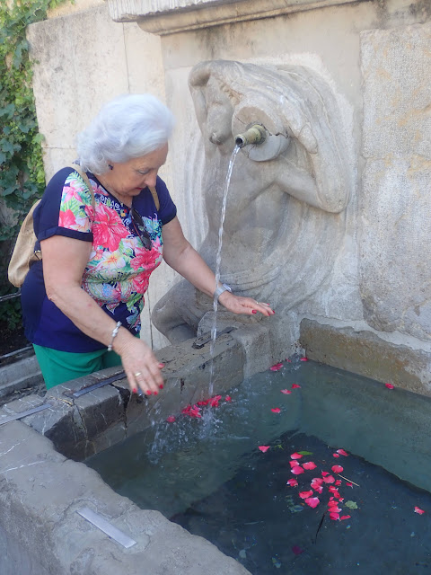 Retomamos la subida por la Cuesta de San Gregorio, junto a, menos mal, sombreados y floridos cármenes que sucesivamente se nos muestran y a los que, cuando podemos, nos asomamos para curiosos vislumbrar a duras penas los misterios de su interior, caminando sucesivamente por la Placeta de Nevot, por las inmediaciones del Palacio del Almirante y la endulzada Cuesta de María la Miel.